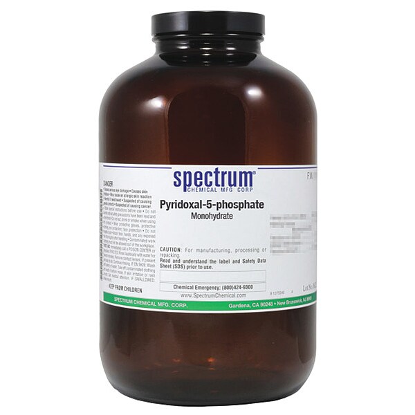 Pyridoxal-5-Phosphate, Concentration 100 Percent, CAS Number 41468-25-1, Molecular Weight 265.17, Chemical Formula C8H10NO6P.H2O, Chemical Container Material Amber Glass, Chemical Container Type Bottle, Chemical Grade Lab, Chemical Container Size 1 kg, Chemical Family Type Bases, Shelf Life 24 mo
