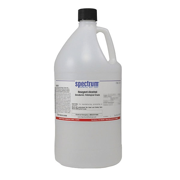 Denatured Reagent Alcohol, Concentration Not Applicable, CAS Number 64-17-5, 67-56-1, 67-63-0, Molecular Weight 46.07 F.W; 32.04 F.W; 60.11 F.W, Chemical Formula C2H5OH, Chemical Container Material Plastic, Chemical Container Type Jug, Chemical Grade Lab, Chemical Container Size 4 L, Chemical Family Type Alcohol, Shelf Life 24 mo, Shipping Restrictions UN1987, Alcohol, n.o.s. (Denatured Ethanol), 3, PG II, Standards Not Applicable, Special Information Not Applicable