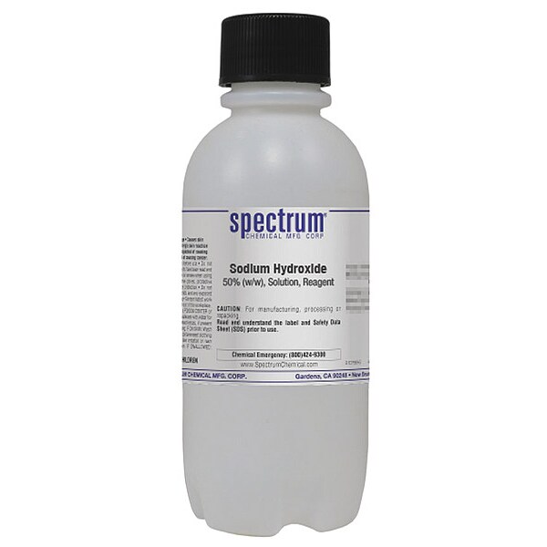 Sodium Hydroxide, Concentration 50 Percent w/w, CAS Number 1310-73-2, 7732-18-5, Molecular Weight 40, Chemical Formula NaOH, Chemical Container Material Plastic, Chemical Container Type Bottle, Chemical Grade Lab, Chemical Container Size 500 mL, Chemical Family Type Inorganic, Shelf Life 24 mo, Shipping Restrictions UN1824, Sodium Hydroxide, Solution, 8, PG II, Standards Not Applicable, Special Information Not Applicable