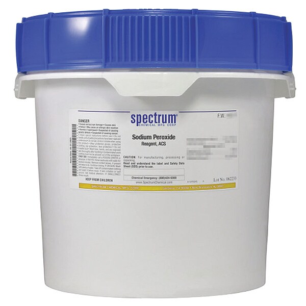 Sodium Peroxide, Concentration Not Applicable, CAS Number 1313-60-6, Molecular Weight 77.98, Chemical Formula Na2O2, Chemical Container Material Plastic, Chemical Container Type Drum, Chemical Grade ACS, Chemical Container Size 12 kg, Chemical Family Type Inorganic, Shelf Life 24 mo, Shipping Restrictions UN1504, Sodium Peroxide, 5.1, PG I, Standards Not Applicable, Special Information Not Applicable