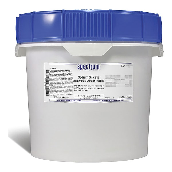 Sodium Silicate - Pentahydrate, Concentration Not Applicable, CAS Number 10213-79-3, Molecular Weight 212.15, Chemical Formula Na2SiO3�5H2O, Chemical Container Material Plastic, Chemical Container Type Drum, Chemical Grade Lab, Chemical Container Size 12 kg, Chemical Family Type Reagent, Shelf Life 24 mo, Shipping Restrictions UN3253, Disodium Trioxosilicate, 8, PG III, Standards Not Applicable, Special Information Not Applicable