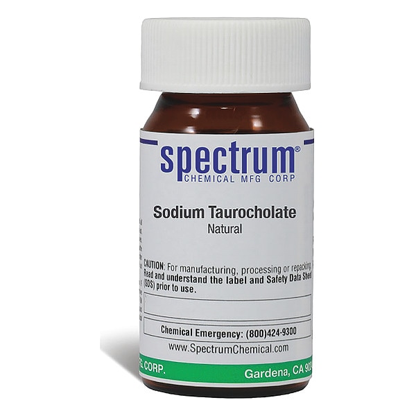 Sodium Taurocholate, Natural, CAS Number 145-42-6, Chemical Container Material Amber Glass, Chemical Container Type Bottle, Chemical Grade Reagent, Chemical Container Size 5 g, Chemical Family Type Analytical Reagents, Shelf Life 24 mo