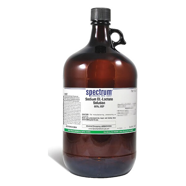 Sodium Lactate Solution, USP, Concentration 60 Percent, Chemical Container Material Amber Glass, Chemical Container Type Bottle, Chemical Grade USP, Chemical Container Size 4 L, Chemical Family Type Analytical Reagents, Shelf Life 24 mo, Shipping Restrictions Chemical Not Regulated For Transport