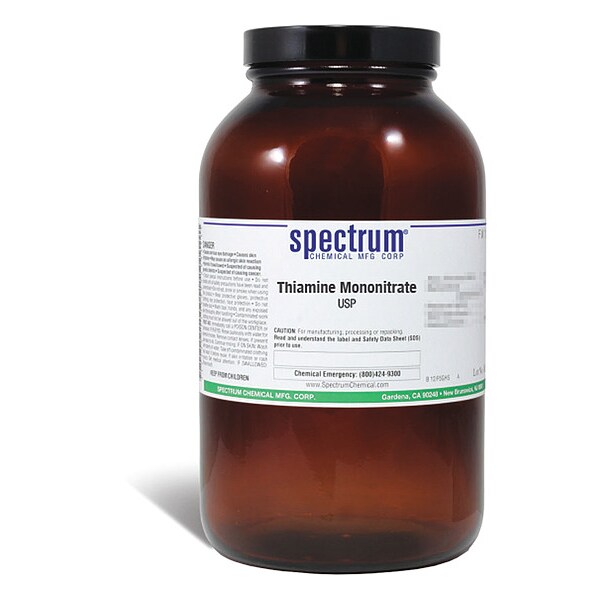Thiamine Mononitrate, USP, CAS Number 532-43-4, Molecular Weight F.W. 327.36, Chemical Formula C12H17N5O4S, Chemical Container Material Amber Glass, Chemical Container Type Bottle, Chemical Grade USP, Chemical Container Size 500 g, Chemical Family Type Analytical Reagents, Shelf Life 24 mo