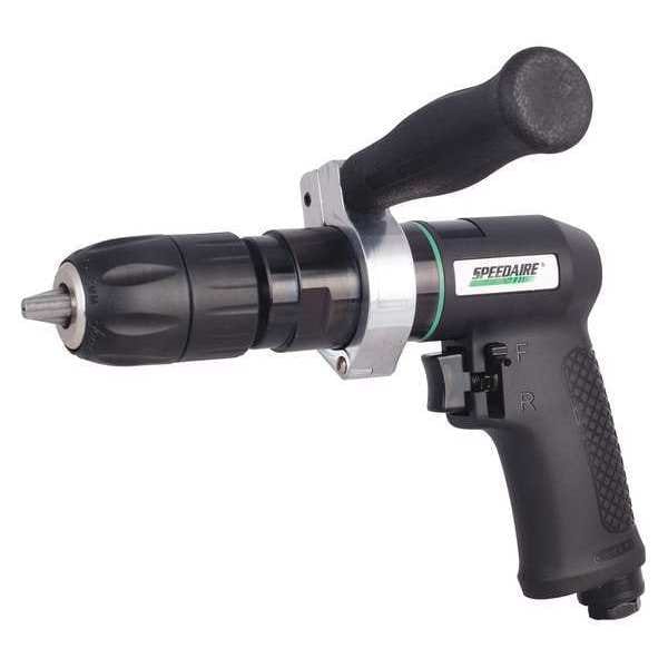 Drill, Reversing Yes, Pistol Body Style - Air Tools, Free Speed 800 RPM, Torque 9.10 ft-lb, Average CFM @ 15 Second Run Time 4.00, CFM @ Full Load 16.0, Required Pressure 90 psi, Min. Hose Size 3/8 in, Handle Material Composite, Variable Speed No, Throttle Type Trigger, Bearings Ball, Housing Material Composite, Gear Train 2-Step Planetary, Overall Length 8 5/8 in, Tool Weight 2.9 lb