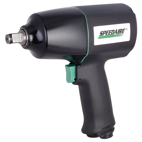 Air Impact Wrench, Power Source Air-Powered, Air Consumption 17 cfm, Air Inlet 1/4 in NPT Female, Air Pressure 90 psi, Max. Air Pressure 90 psi, Min. Air Pressure 50 psi, Min. Hose Size 3/8 in, Exhaust Location Bottom, Duty Rating Industrial Duty, Breakaway Torque 600 ft-lb, Fastening Torque 600 ft-lb, Free Speed 9,000 RPM, Impact Rated Yes, Impact Sound Level 95 dB, Impacts per Minute 1,300 ipm, Number of Speed Settings 3, Max. Bolt Capacity 5/8 in, Drive Size 1/2 in, Drive Type Standard