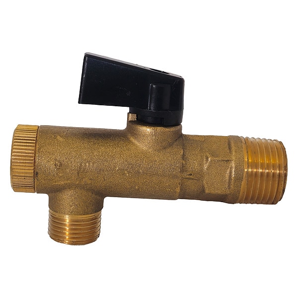 Filter Ball Valve, Body Material Brass, Drain Port Gender Male, Drain Port Size 3/8 in, Drain Port Type NPT, Handle Material ABS, Handle Type Lever, Inlet Design Single, Inlet Port Gender Male, Inlet Port Size 1/2 in, Inlet Port Type NPT, Maximum Valve Pressure Rating 725 psi, Overall Height 1 in, Overall Length 3 1/2 in, Overall Width 2 1/2 in, Product Type Filter Ball Valve, Seal Material PTFE, Seat Material NBR, Secondary Inlet Port Gender Not Applicable
