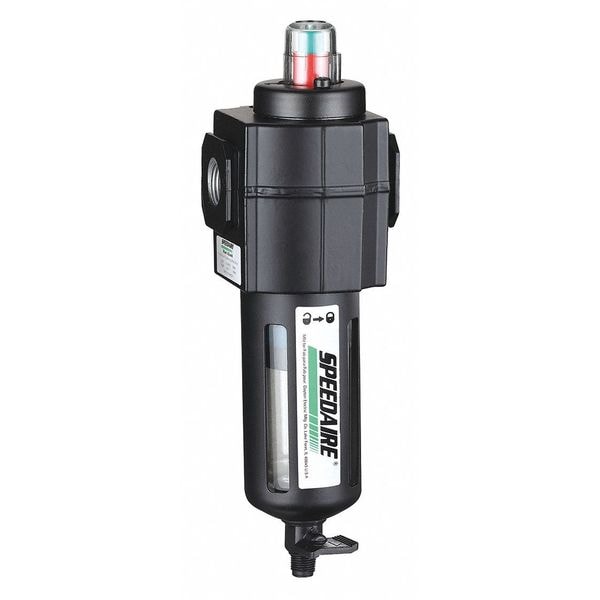 Pneumatic Oil Filter, Filter Type Coalescing, Air Inlet Size 1/2 in, Air Inlet Type NPT, Maximum Flow Rate 20 cfm, Maximum Operating Pressure 150 psi, Maximum Operating Temperature 125 Degrees F, Overall Width 2 11/16 in, Overall Height 8 1/2 in, Drain Included Yes, Filter Bowl Material Polycarbonate, Drain Type Manual, Series Intermediate Duty, Differential Pressure Indicator Included No, Air Flow Direction Left to Right, Air Inlet Gender Female, Air Outlet Gender Female, Air Outlet Size 1/2 in