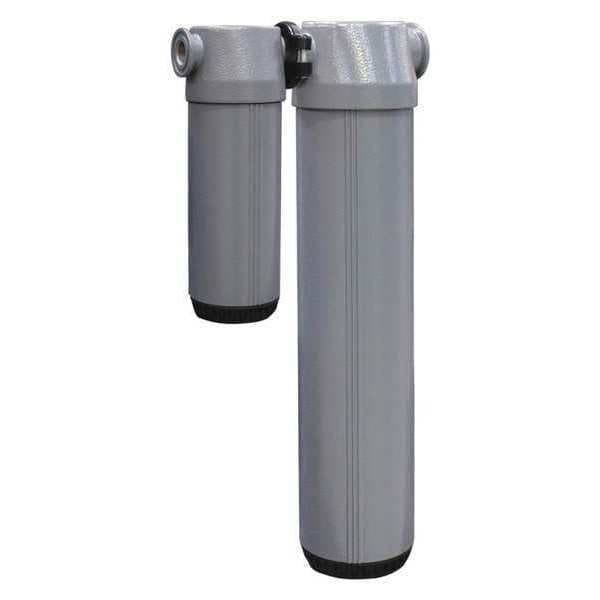 Desiccant Air Dryer, ISO Class 2, Air Inlet Size 1/4 in, Air Inlet Type NPT, Maximum Flow Rate 5 cfm, Overall Length 11 13/16 in, Overall Width 8 13/16 in, Maximum Flow @ 100 psi 5, Maximum Operating Pressure 290 psi, Minimum Operating Temperature 35 Degrees F, Dew Point -40 Degrees F, Filter Rating 15 micron, Filter Included Yes, Number of Stages 2, Air Outlet Size 1/4 in, Air Outlet Type NPT, Application Compressed Air Dryer, Body Material Aluminum, Bowl Capacity 2.5 lb, Bowl Material Aluminum