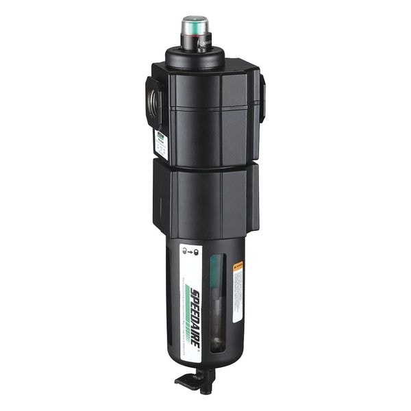 Pneumatic Oil Filter, Filter Type Coalescing, Air Inlet Size 3/4 in, Air Inlet Type NPT, Maximum Flow Rate 60 cfm, Maximum Operating Pressure 150 psi, Maximum Operating Temperature 125 Degrees F, Overall Width 3 1/8 in, Overall Height 11 3/8 in, Drain Included Yes, Filter Bowl Material Polycarbonate, Drain Type Manual, Series Standard Duty, Differential Pressure Indicator Included No, Air Flow Direction Left to Right, Air Inlet Gender Female, Air Outlet Gender Female, Air Outlet Size 3/4 in