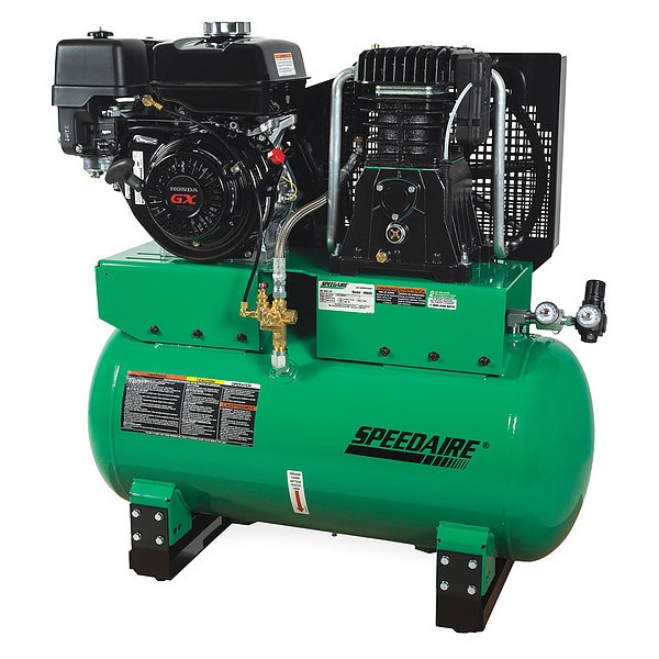 Stationary Air Compressor, Fuel Type Gasoline, Number of Stages 2, Engine Output Power 9 hp, Engine Brand Honda, Free Air Flow Rate @ Maximum Pressure 18.3 cfm, Maximum Operating Pressure 175 psi, Air Tank Size 30 gal, Air Tank Style Horizontal, Engine Starter Type Recoil, Sound Level Not Rated, Pump Type Piston, Pump Speed 864 RPM, Fuel Tank Capacity 1.7 gal
