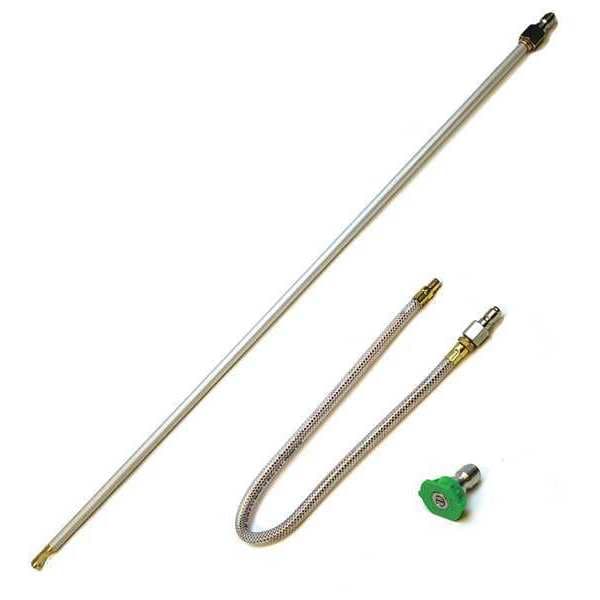12 in Flexible Wand with 0 deg Spray, 24 in Wand with 90 degree Spray Head, 25 degree Fan-Spray Nozzle