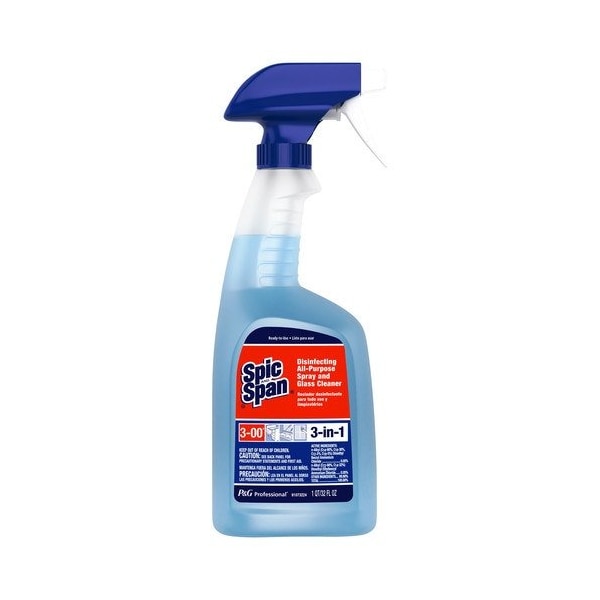 Simplify cleaning at your property without sacrificing results. Spic and Span Disinfecting All-Purpose Spray and Glass Cleaner is a powerful three-in-one formula that helps improve cleaning productivity and simplify cleaning while saving time in one easy step. This professional-strength cleaner can replace a glass cleaner, an all-purpose cleaner, and a disinfecting cleaner. This ready-to-use trigger spray bottle cleans grease stains, mold, mildew, and counter stains and can be used on sinks, vanities, countertops, range hoods, plastic trash containers, toilets, and tile.