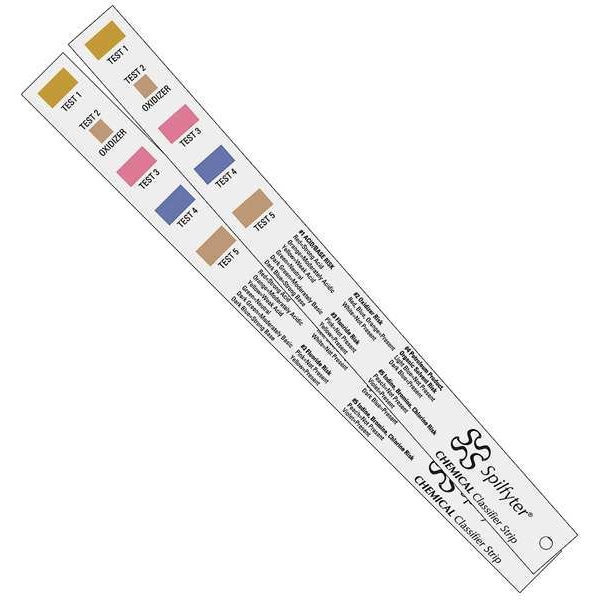 Classifier Strip, Overall Length 11 3/4 in, Test Type Classifier Strips, Testing Parameter One Acid/Base, Bromine, Chlorine, Fluoride, Iodine, Organic Solvent, Oxidizer, Petroleum Distillate, Overall Width 1 in, Parameter Measurements Included Positive/Negative, Number of Tests 50, pH Resolution Not Applicable, Test Detects For Chemicals, Unknown Spilled Liquid, Wastewater, Parameter Five Measurements Included Not Applicable, Parameter Four Measurements Included Not Applicable