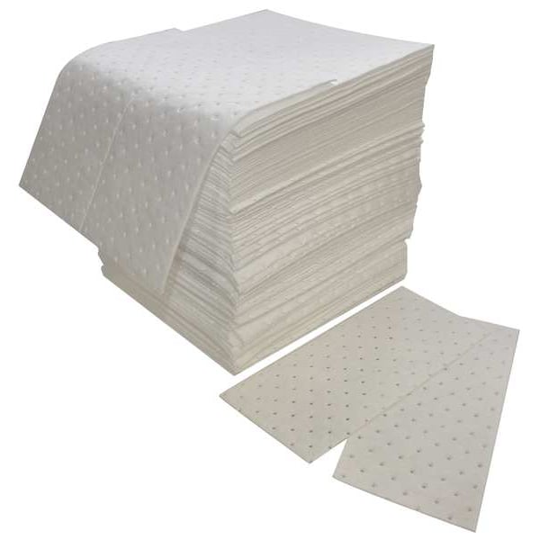 Product Type Sorbent Pad, Fluids Absorbed Oils, For Use With Chemical or Metal Type Oil, Size 16 in x 18 in, Volume Absorbed Per Pad 40 15/16 oz, Volume Absorbed per Pkg. 32 gal, Color/Pattern White, Material Polypropylene, Number of Layers 1, Perforated Perforated, Perforated Size 8 in x 18 in, Package Quantity 100