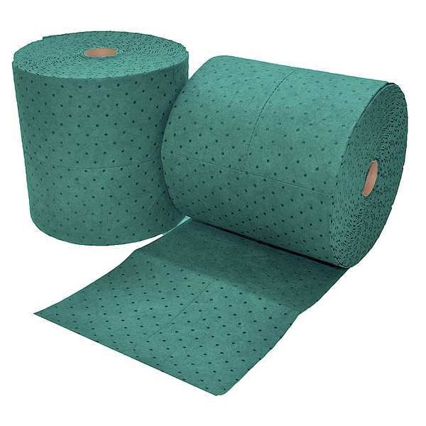 Product Type Sorbent Roll, Fluids Absorbed Universal, For Use With Chemical or Metal Type Universal, Size 16 in x 150 ft, Volume Absorbed per Pkg. 46 gal, Color/Pattern Green, Material Polypropylene, Number of Layers 3, Perforated Perforated, Perforated Size 8 in x 12 in, Package Quantity 2