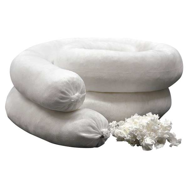 Sorbent Sock, 42 gal, 3 in x 10 ft, Universal, White, 6 PK