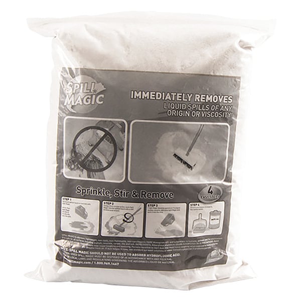 Granular Sorbent, Fluids Absorbed Universal, Specific Liquid Compatibility Chemicals, Fuel, Oil, Paint, Container Type Bag, Composition Detail Amorphous Alumina Silicate, Container Type and Capacity 11 lb Bag, Weight 11 lb, Volume Absorbed per Pkg. 3 gal, Specialized Applications Industrial, Deodorizing No, Package Quantity 12