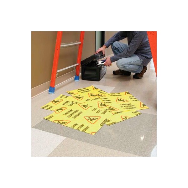Spilltech ypz100m-bx universal medium weight caution mat pads, 19"w x 15"l, yellow, 100/pack alert workers to potential safety hazards and work in progress while keeping floors dry. features high-visibility mat design features multilingual safety messages and symbols to alert workers about potential workplace hazards abrasion-resistant top layer gives pads strength for everyday cleanup jobs universal absorbency means one product for multiple liquids quickly absorbs leaks, spills and overspray to keep floors dry