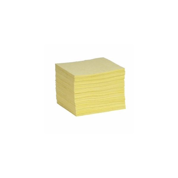 Product Type Sorbent Pad, Fluids Absorbed Harsh Chemicals, For Use With Chemical or Metal Type Hazardous Materials, Size 10 in x 14 in, Volume Absorbed Per Pad 37 1/4 oz, Volume Absorbed per Pkg. 18 gal, Color/Pattern Yellow, Material Polypropylene, Number of Layers 3, Perforated Perforated, Perforated Size Not Perforated, Package Quantity 100