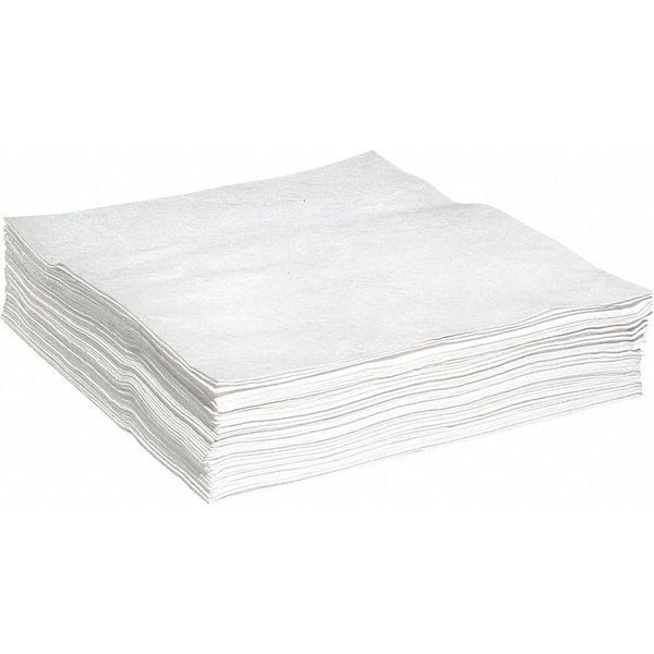 Product Type Sorbent Pad, Fluids Absorbed Oils, For Use With Chemical or Metal Type Oil, Size 30 in x 30 in, Volume Absorbed Per Pad 1 gal, Volume Absorbed per Pkg. 52 gal, Color/Pattern White, Material Polypropylene, Number of Layers 1, Perforated Perforated, Perforated Size Not Perforated, Package Quantity 50