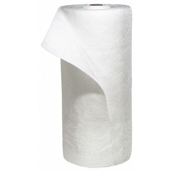 Product Type Sorbent Roll, Fluids Absorbed Oils, For Use With Chemical or Metal Type Oil, Size 30 in x 150 ft, Volume Absorbed per Pkg. 63 gal, Color/Pattern White, Material Polypropylene, Number of Layers 1, Perforated Not Perforated, Perforated Size Not Perforated