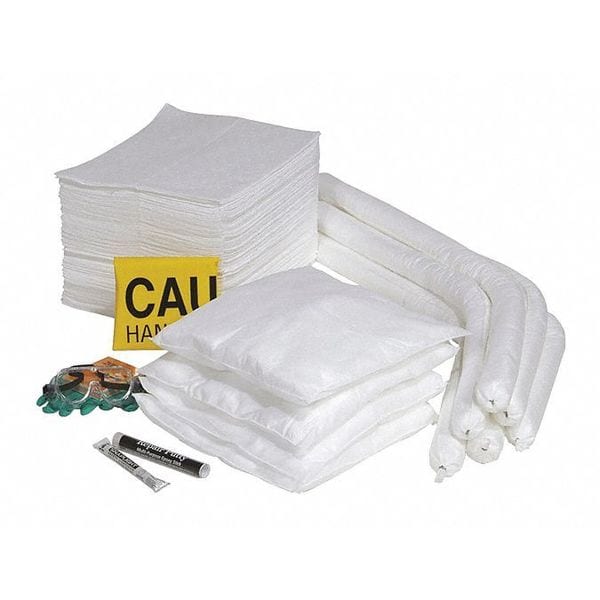 Spill Kit Refill, Fluids Absorbed Oils, Neutralizes Chemical Type Not Applicable, Volume Absorbed Per Kit 43 gal, Container Type Box, 50 gal Container Capacity, Not Applicable, Filled, Sorbents Included (100) Absorbent Pads, (4) Absorbent Pillows, (6) Absorbent Socks, PPE Included (2) Pair of Gloves, (1) Pair Goggles, Additional Components Included (1) Glow Light Stick, (6) Tamper Proof Seals, Emergency Response Guide, (1) Wheeled Overpack, Lockable No, UN Rating Not Applicable