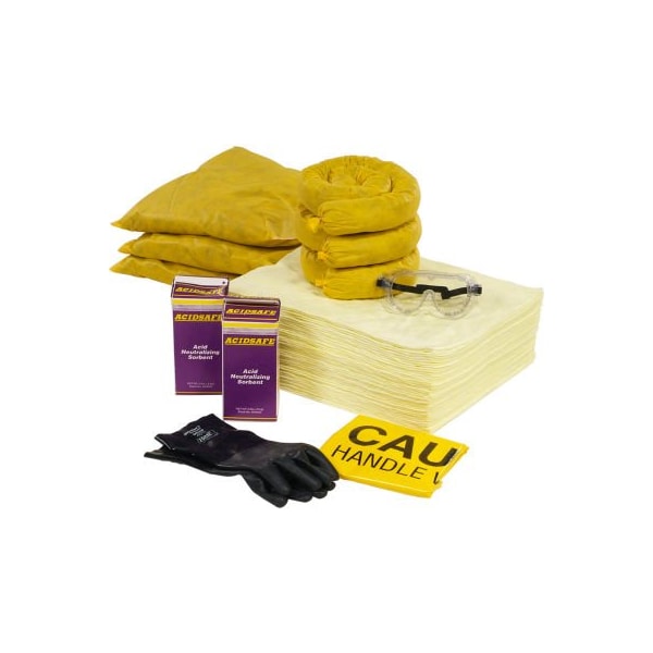 Spilltech rspkhz-batt battery acid kit refill kit includes: 60 pieces 40 15" x 19" pads 3 3" x 4' socks 3 18" x 18" pillows 2 2-lb. Shaker acid neutralizing sorbent powder 2 disposal bags & ties 1 pair neoprene gloves 1 safety goggles 1 vinyl spill kit label 1 yellow 20-gallon overpack(1h2/x75/s) 6 tamperproof seals