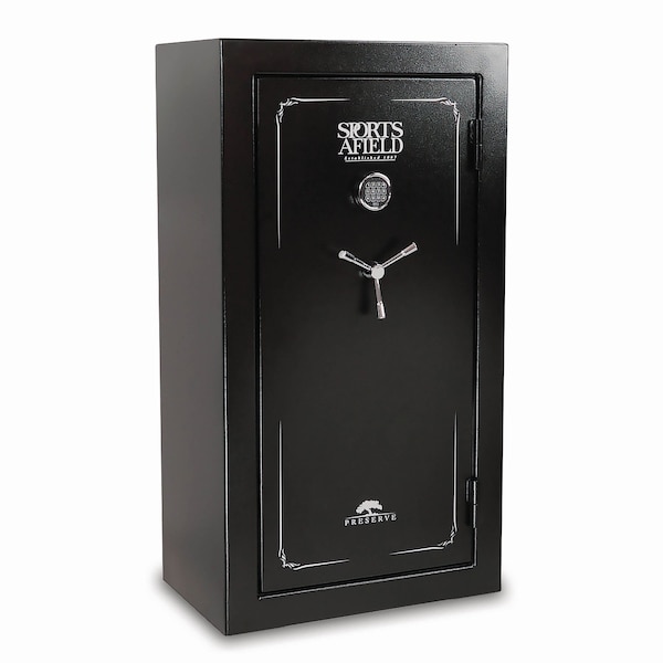 The Preserve SA5932P 14.03 cu. ft. Fireproof and Waterproof 32-Gun Safe provides all the essentials for security, giving you total peace of mind. Our proprietary Triple Seal technology creates a seal against fire and smoke damage for 45 minutes in temperatures up to 1400 degrees Farenheit and water protection for up to 7-days in 2 ft. of standing water. This long gun safe is constructed out of industrial grade steel with a fortified Uni-Weld body and eight 1.5 in. steel locking bolts. It features a fully programmable electronic lock, Anti-Theft Alarm, and comes with two Fail Safe override keys. The interior of the safe is fully carpeted and includes a barrel rack with 32 gun positions, a Zero-Sag steel reinforced top shelf that supports heavier items, and three height-adjustable side shelves. This gun safe is California DOJ approved and includes our best-in-class Lifetime Warranty that covers the entire safe against theft, fire, natural flood, locks, parts, and paint.