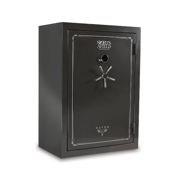 The Sports Afield Haven 48-Gun Fire/Waterproof Gun Safe is intelligently designed to keep your firearms and valuables away from theft, fire, and natural flood. Our Triple Seal fire, water, and smoke protection combined with a full-seam Uni-Weld body construction, ten 1.5 in. solid steel locking bolts, pre-drilled bottom bolt-down holes, and electronic lock create a fortified barrier for protection. The illuminated electronic lock features Print Guard technology which cleverly disguises your passcode. Print Guard technology generates a random 2-digit sequence prior to you entering your passcode to ensure a random pattern of fingerprints across the lock face to deter pattern-guessing thieves. The convertible interior is fully carpeted with bright interior lighting, adjustable/removable top shelf and side shelves, and a premium pocket door organizer. This long gun safe has 48 barrel rest positions and 8 handgun holsters. Backed by our industry's best-in-class Lifetime Warranty that covers your entire long gun safe against theft, fire, natural flood, and defective locks, parts, and paint with free shipping on replacement safes and locksmith services if you ever get locked out.