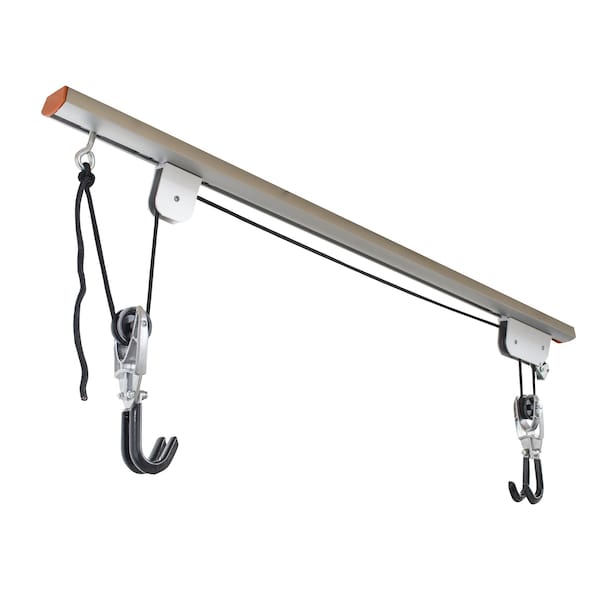 Get your bike off the garage floor and out of the way using the Sportsman Series Aluminum Ceiling Mount Bicycle Lift. The easy to install Rail Mount Pulley Locking System makes it easy to safely and securely lift your bike off the floor. The Ceiling Rail Mount Bike Rack is lightweight and customizable, and each of the two pulley assemblies slides along the aluminum rail, making it a simple task to align the position of the bike seat and handle bar. Once in position, the pieces lock with a hex key so they stay in place for the next use.