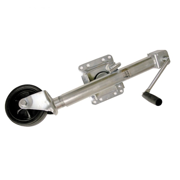 Take the work out of hitching up the trailer holding your boat or ATV with the Sportsman Series 1000 Lb Trailer Jack. This adjustable height trailer jack can accommodate trailer tongues up to 26 inches from the ground. Take the work out of hitching up and parking Bolt-on style (hardware included) 5.5" 360° swivel wheel, swing-back style (folds to side when not in use) Adjustable height (up to 26 inch tongue height) Jack bolt plate measures 6-3/8" L x 5-3/8" W