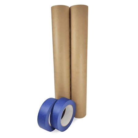 18 x 60 yd Masking Paper and 1 1/2 x 60 yd Painters Masking Tape Set of 1 Each for Covering