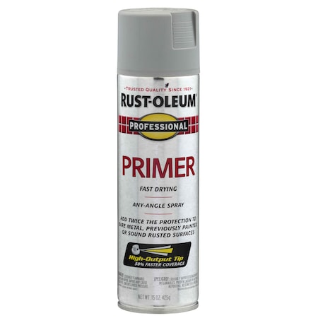 Spray Primer, Rust Preventative, Gray, Exterior/Interior, General Purpose, Solvent, 15 oz