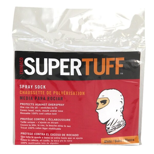 Protect yourself with Trimaco's SuperTuff Non-Linting Spray Sock. Made of stretchable all cotton knit. Protects hair and facial hair while covering nose, mouth and neck.