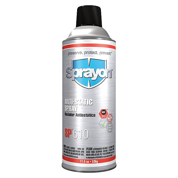 Anti-Static Spray, Size 11.5 oz, Recommended Dilution Ready to Use, Container Type Aerosol Can, Color Clear, Fragrance Vanilla, VOC Content 96 Percent, Standards NSF