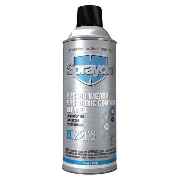 Contact Cleaner, Plastic Safe Yes, Plastic Compatibility Safe on All Plastics, Container Type Aerosol Spray Can, Container Size 10 oz, Cleaner Form Liquid, Dielectric Strength 12.5 kV, VOC Content 2 Percent, NSF Rating K2, Product Series EL(TM)2206, Nonflammable No, Product Label Contact Cleaner, Chlorinated No, Standards NSF Rated, Base Formula Chemical Based Solvent, Biodegradable No, Butyl Free No, Flash Point Greater Than 200 Degrees F, Net Weight 10 oz, Properties Plastic Safe