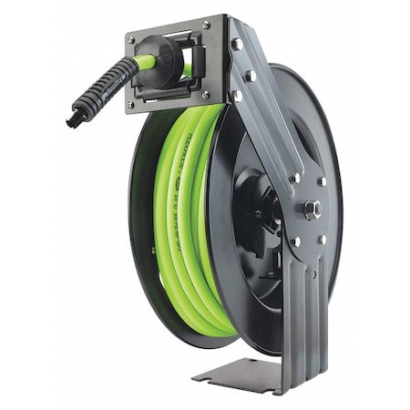 Spring Return Hose Reel, 3/8 in Hose Diameter, 50 ft Length, 300 psi Max. Pressure, Aluminum, Green