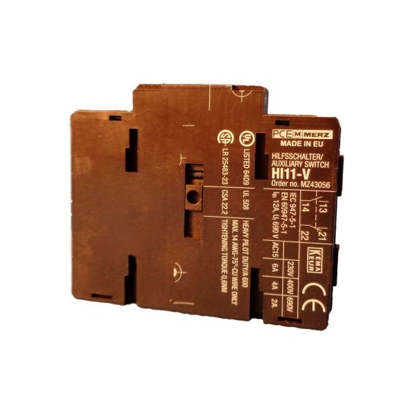 Springer controls / merz hi11-v, auxiliary contact (control voltage) - base mount this is a normally open extra pole with control voltage capabilities for use with a plc or low voltage system. It can be mounted on either side of a disconnect switch.