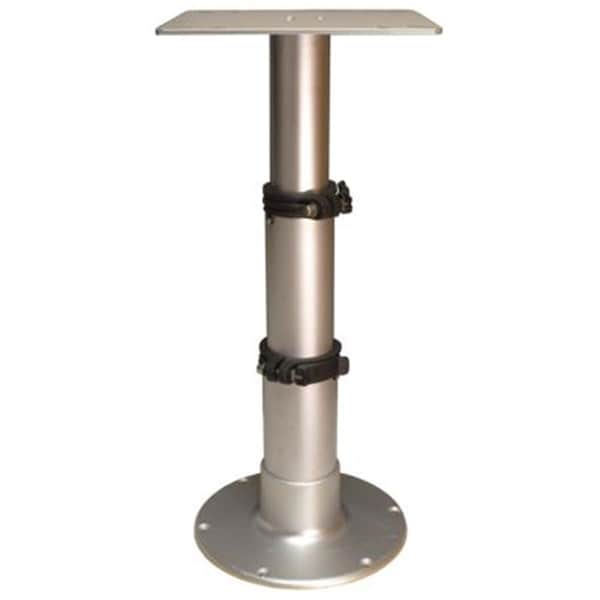 The Springfield Marine 3-Stage Pedestal elevates your boating game with an air-powered variable-height pedestal for the table or grill. Its stainless steel hardware and rust-resistant anodized finish ensure a long life on your rig and the nylon clamping brushings. Features Air-powered height adjustment 12 in. diameter base Stainless steel hardware Rust-resistant anodized finish Nylon clamping brushings 11 in. hole pattern Color - Aluminum Size - 12.75 20 28 in.