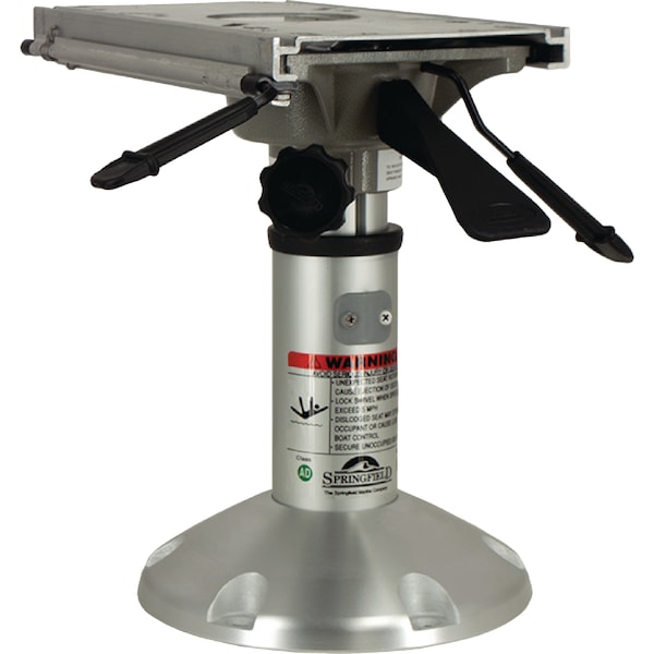 2-3/8" pedestal with 9" round base; Anodized finish; Air-powered height adjustment; Includes locking Trac-Lock air-ride slide & swivel