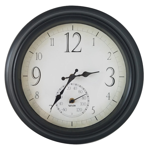 Taylor Decorative Clock/Thermometer Plastic Black 14 in.