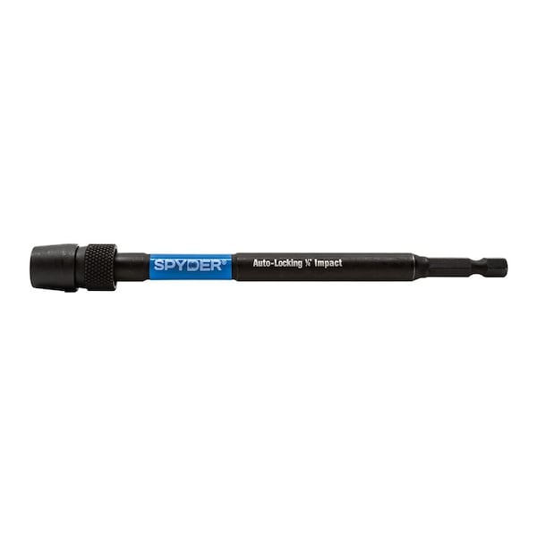 Spyder quick change bit holders are the durable solution for rapid bit changes in high power rotary drill motors with a 3-jaw chuck. A 3/8'' quick change connector securely holds 1/4'' hex shank driver bits and extensions for enhanced driving accuracy and one-handed ease of use. When the bit needs to be changed, simply pull back on the knurled sleeve and bits are auto-spring ejected, ensuring bits will not become stuck in the bit holder.