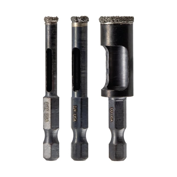 3pc Arbored Diamond Grt Hole Saw Set