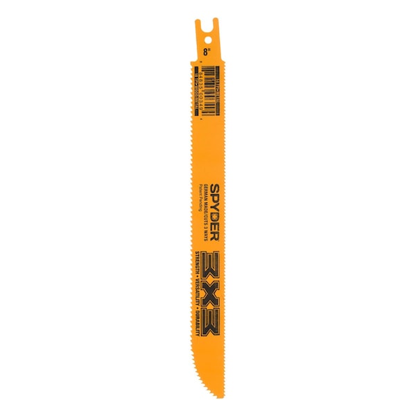 The double-edged Spyder 3X3 reciprocating saw blade lets you make multi-directional cuts without flipping your saw over. 8% Bi-metal cobalt cutting edges power through metals, wood with nails, and demolition tasks without overheating or wearing out. The rounded tip plunge cuts into drywall and other materials for added cutting versatility. Two cutting edges means 2x the life in each 3X3 blade. Exceptional strength, versatility and durability.