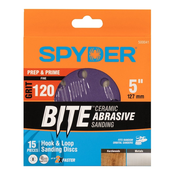 5-Inch x 8-Hole 120 Grit Ceramic with Stearate Sanding Discs (15-Pack)
