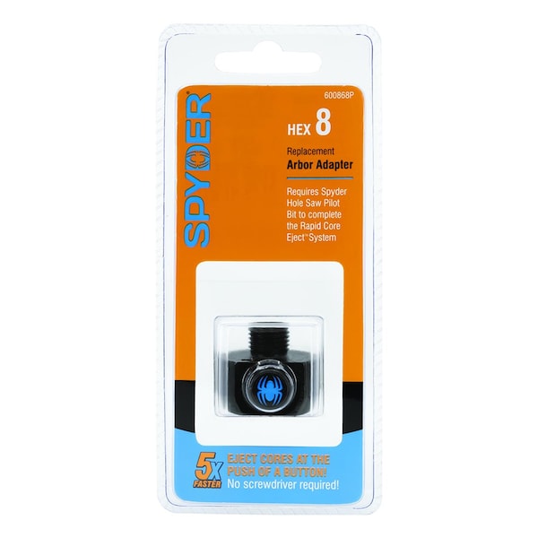 Use Spyder's Rapid Core Eject arbor system to remove cores without prying - drill hole, press button, pull back the hole saw, and eject the core - up to 5x faster than standard hole saw arbors. Cut at an angle, and use two adapters second adapter sold separately on one pilot bit to enlarge existing holes.