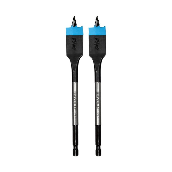 Spyder Stinger spade bits feature an innovative non-clogging, automatic-feeding precision tip for optimal speed and accuracy. This patent pending tip automatically engages the work surface for no-thrust drilling. Unlike other spade bits with a self feeding thread point, the Stinger spade bit won't clog, won't wander and drills up to 20x faster than the competition. Chuck them into your impacting tool for even greater drilling power on soft and hard woods.