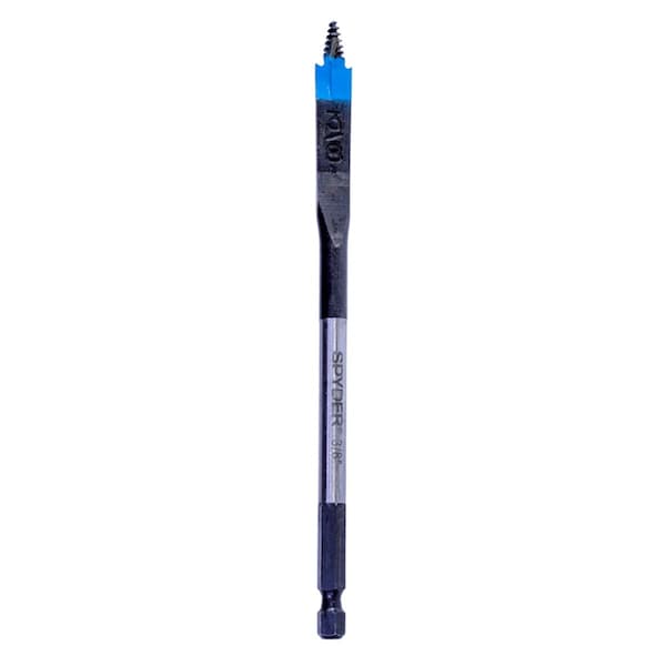 Spyder Stinger spade bits feature an innovative non-clogging, automatic-feeding precision tip for optimal speed and accuracy. This patent pending tip automatically engages the work surface for no-thrust drilling. Unlike other spade bits with a self feeding thread point, the Stinger spade bit won't clog, won't wander and drills up to 20x faster than the competition. Chuck them into your impacting tool for even greater drilling power on soft and hard woods.