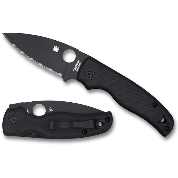 2024 Spyderco Shaman G-10 Black Black Blade Serrated